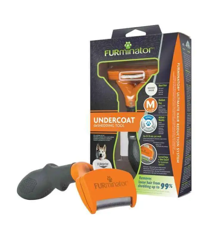 Outil pour chien moyen à poils courts, recommandé en période de mue et aide à réduire la chute des poils.