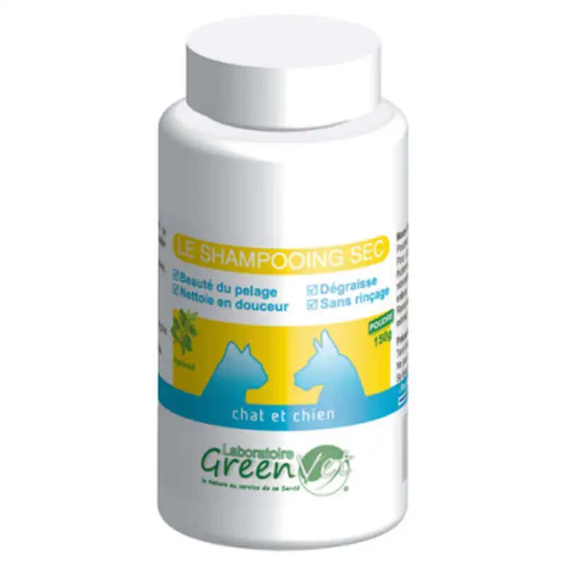Shampooing sec pour chien et chat, qui permet de nettoyer le poil sans le mouiller et idéal pour rafraîchir votre chien ou chat entre 2 shampooings,