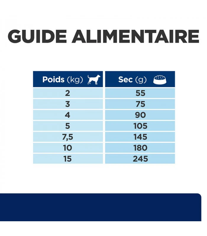 Aliment thérapeutique, il doit être prescrit par votre vétérinaire selon l’état de santé de votre animal. Les rations journalières conseillées doivent être adaptées aux conditions climatiques, à l’activité de l’animal et à sa condition physique selon les conseils de votre vétérinaire. De l’eau fraîche et propre doit être disponible à tout moment de la journée.
