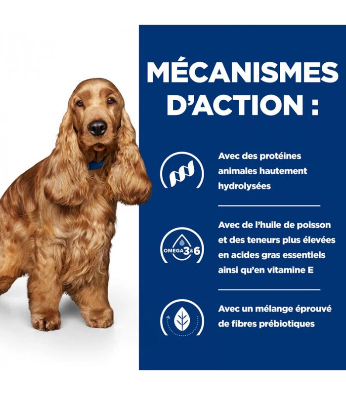 Autres indications : Dermatite prurigineuse ; Insuffisance pancrĂ©atique exocrine (IPE) ; Flatulences ; Formes dâentĂ©ropathies chroniques (diarrhĂ©es ou vomissements) rĂ©pondant au changement d’aliment, aux antibiotiques ou aux corticoĂŻdes.