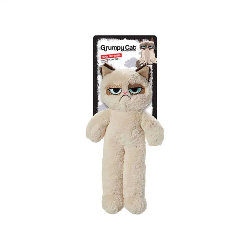 Cet jouet à mâchouiller, reprend le célèbre chat grognon d’internet et couine lorsqu’il est pris dans la gueule.